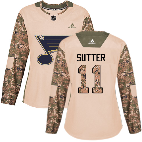 Women's Brian Sutter Authentic St. Louis Blues #11 Camo Veterans Day Practice Jersey