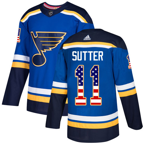 • Youth Brian Sutter Authentic St. Louis Blues #11 Blue USA Flag Fashion Jersey